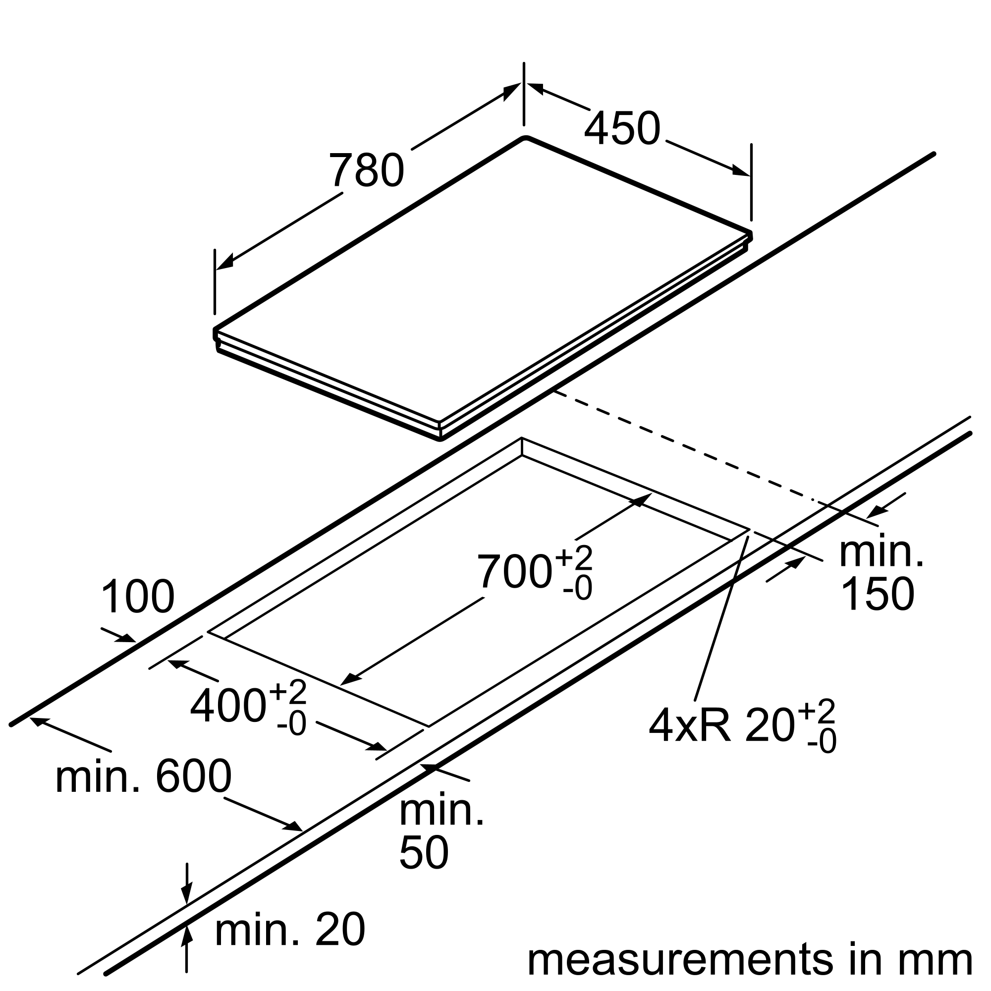Kích thước lắp đặt(CxRxS) (mm) | 59 x 700-700 x 400-400mm |