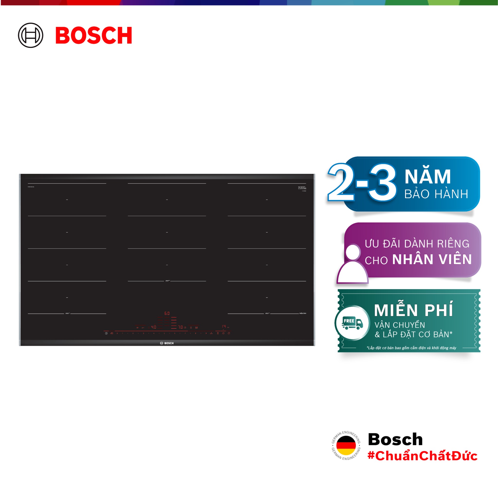 Bếp từ Bosch linh hoạt 5 vùng nấu PXX975DC1E - Series 8 (90cm)
